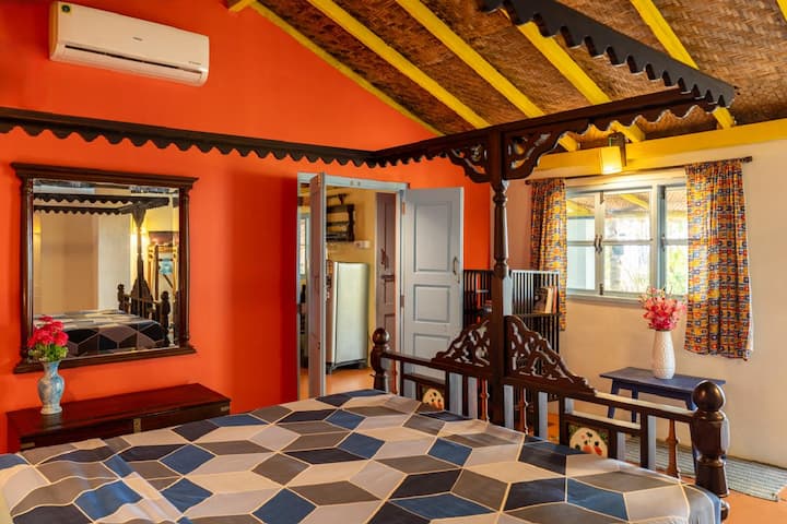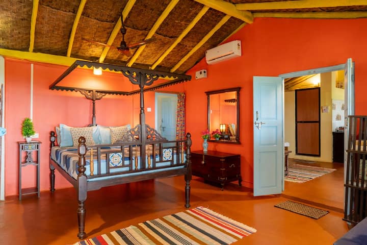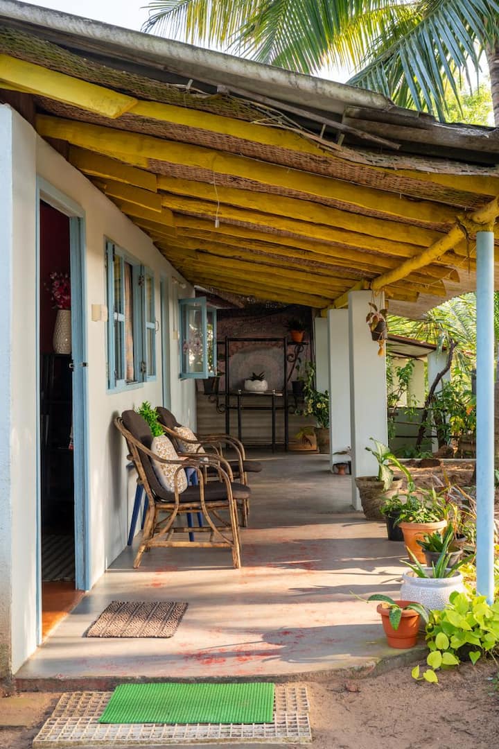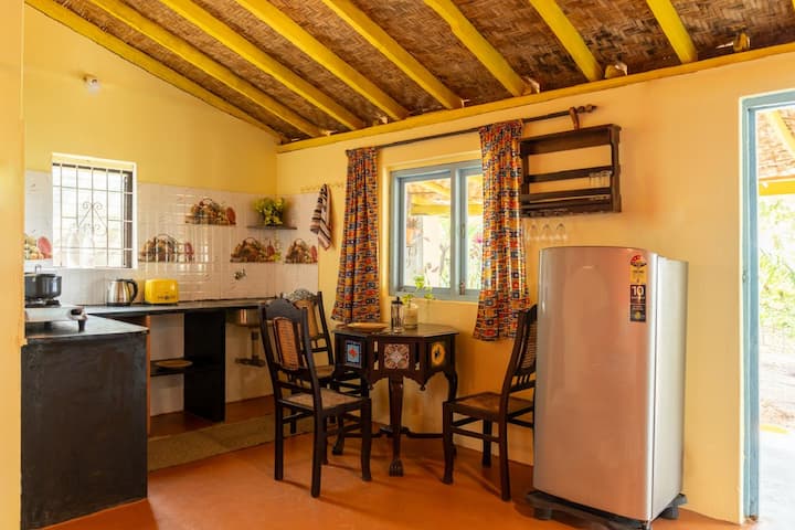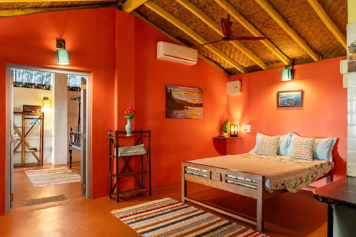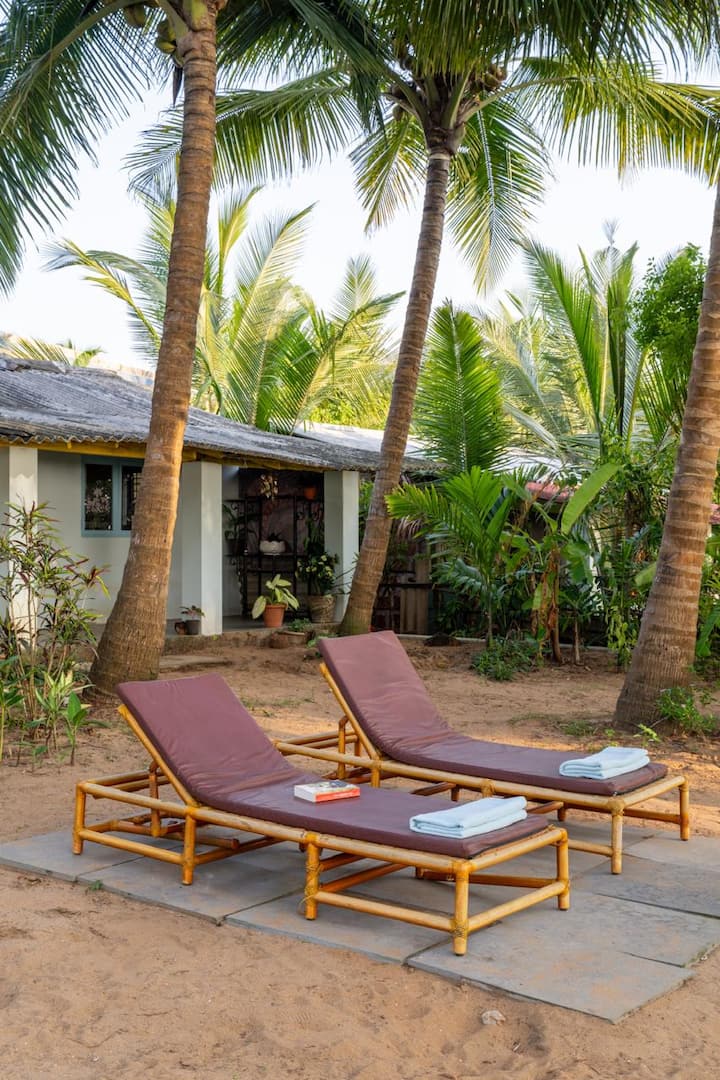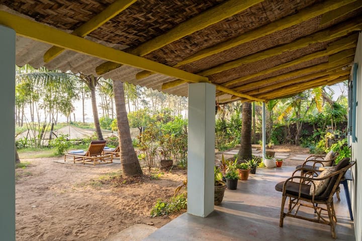 The Hut Mirage on Galgibagh is a cute, fully functional, air-conditioned beach hut featuring two rooms, two double beds, and two bathrooms, along with a well-equipped kitchen, veranda, and dining area. It is located on the edge of pristine Forestry Department land, beside the wild, unspoilt 1.5 km-long Galgibagh Beach.